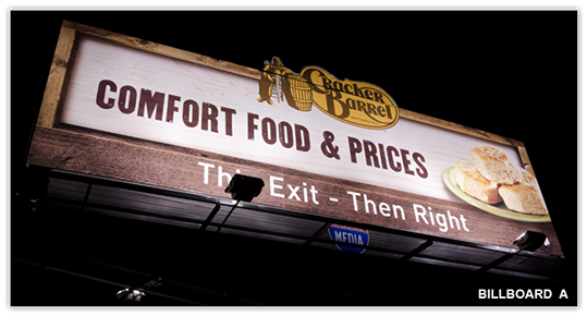 In accordance with their depictions on our Google map, the billboard images are labeled A, B, C and D.