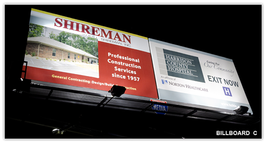 Scroll down below the still photos to view interstate 64 east and westbound video of all four billboards.